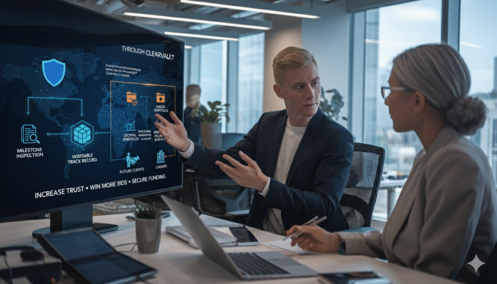 Every milestone inspection and project record through ClearVault builds a verifiable track record of your work. Over time, this creates a digital portfolio of completed projects that showcases your reliability and quality to future clients and lenders.